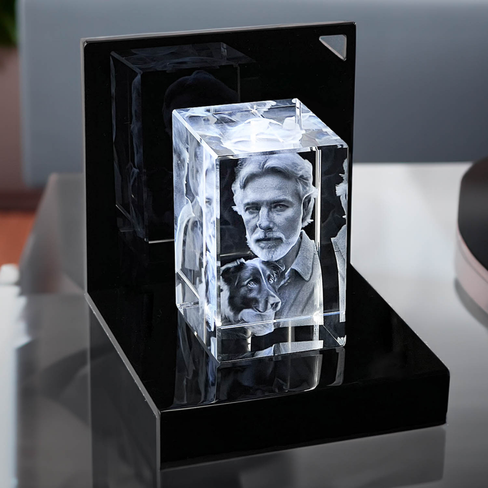Mit unseren Leuchteinheiten in Klavierlack-Optik für die 3D Glasfotos lassen sich Deine Bilder perfekt in Szene setzen. Egal, ob es sich um ein Familienfoto, ein Urlaubserlebnis oder Dein Haustier handelt, durch die 3D Lasergravur wirkt jedes Bild lebendig und einzigartig. Dein 3D Foto in Glas ist nicht nur ein tolles Deko-Element, sondern auch ein persönliches Geschenk, das bei jedem Anlass gut ankommt.