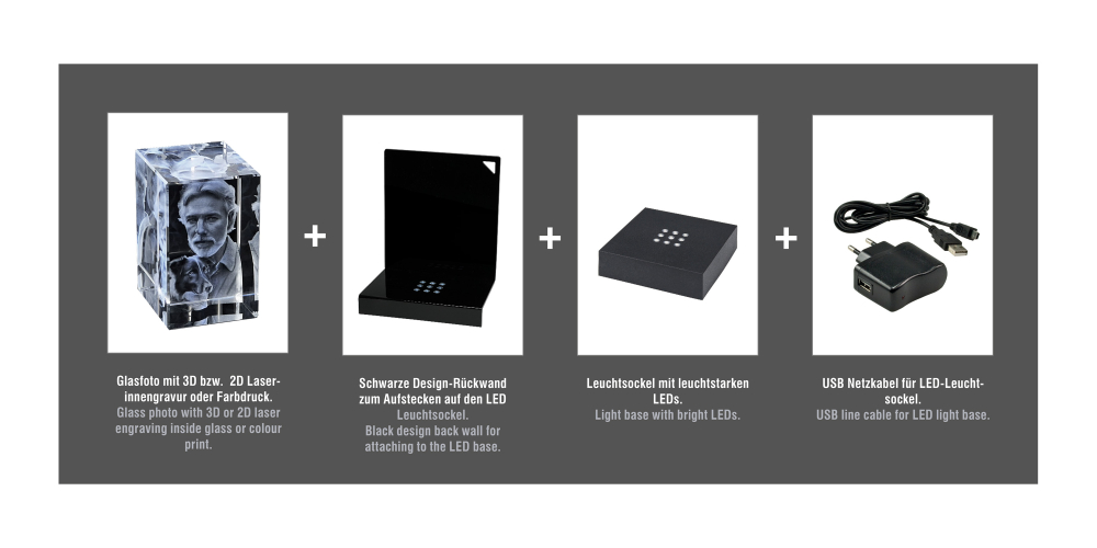 3D Glasfoto Set mit Beleuchtung Gr. S