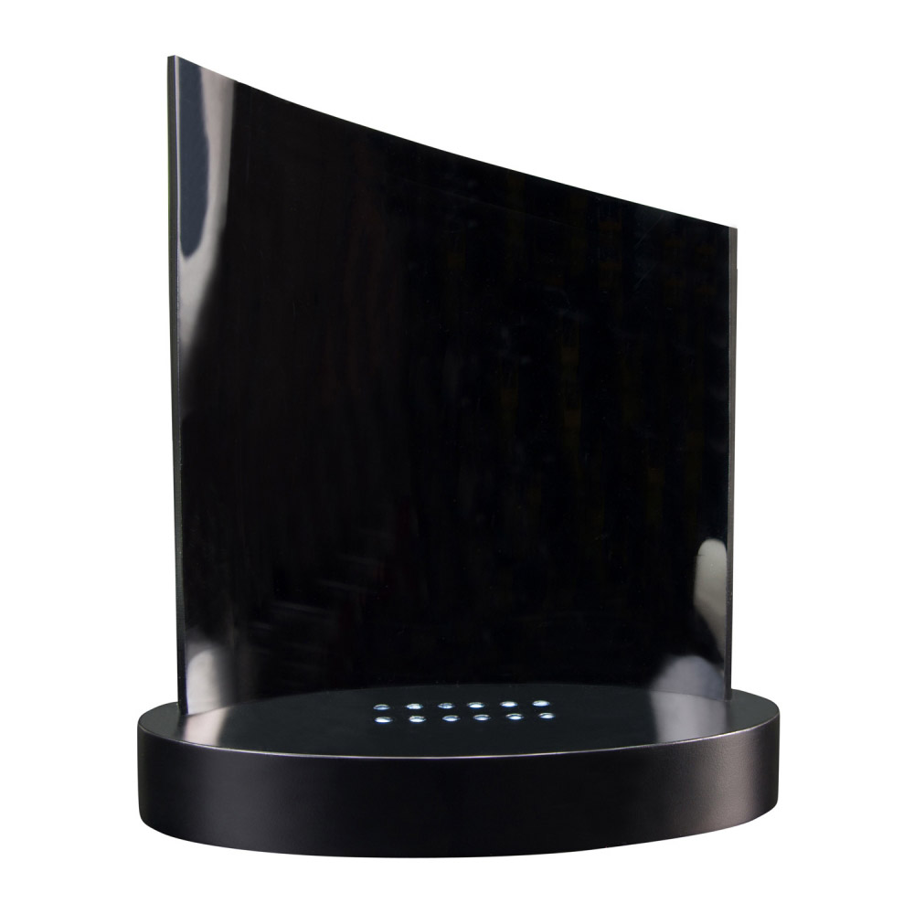 Tipp: Der exklusive Design-Sockel mit Licht ist auch für viele weitere 3D Premiumformen, 3D Glasblöcke, 2D Glasframes und auch farbige Fotos auf Glas erhältlich.