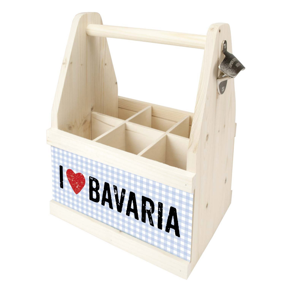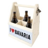 Beer Caddy aus Holz mit einseitigem Motivdruck I LOVE BAVARIA Flaschenträger für 6 Bierflaschen, inkl. seitlichem Flaschenöffner aus Metall, Größe 26 x 34 x 17 cm