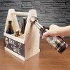 Der Beer Caddy aus europäischem Holz mit coolen Sprüchen lässt das Herz eines jeden Biertrinkers höherschlagen: Mit dem trendigen Flaschenträger lassen sich sechs Bierflaschen einfach transportieren, ohne dabei ins Schwitzen zu kommen. Der seitlich fixierte Flaschenöffner für Kronkorken ist dabei immer zur Stelle und zeigt mit dem eingraviertem Hinweis "Open bottle here" wo es lang geht.