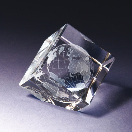 Laserung, die Weltkugel in 3D in einem stilvollen Glaswürfel!