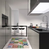 Die robusten Teppiche sind aus ca. 2,2 mm starkem Vinyl gefertigt und einseitig mit verschiedenen Designs bedruckt. Viele kreative Designs wie z.B. grafische Muster, farbenfrohe Mosaik-Designs, fotorealistische Motive oder auch coole Sprüche decken unterschiedliche Stile und Farben ab. Und bei dieser großen und vielfältigen Motivauswahl ist sicher für jeden Wohngeschmack das Richtige dabei!