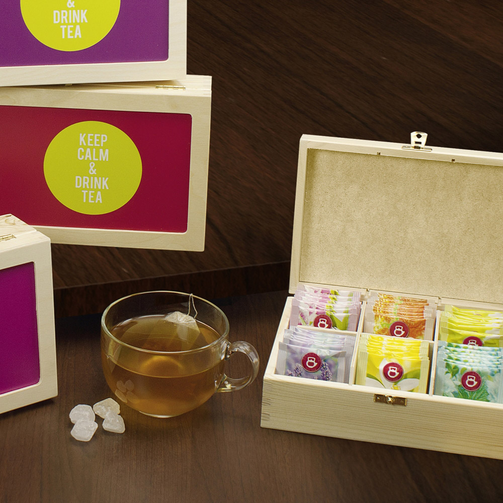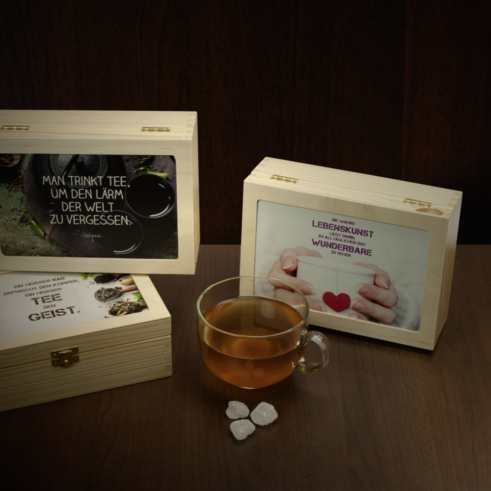 Das Holz für die Teebox kommt aus Europa, Design und Druck sind made by contento®.