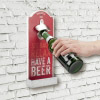 Der Flaschenöffner wird mit einer Schraube an der Wand befestigt. Die Bohrung hierzu ist bereits im MDF-Brett vorhanden.