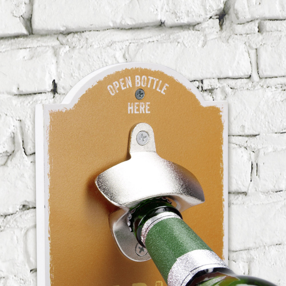 Wand-Flaschenöffner mit farbigem Digitaldruck. Eine massive MDF-Platte wird durch robuste Metallteile - Kapselheber und Auffangschale - zu einem stylischen Flaschenöffner. Wählen Sie aus den modernen Motiven das passende für Ihre Wohnung.