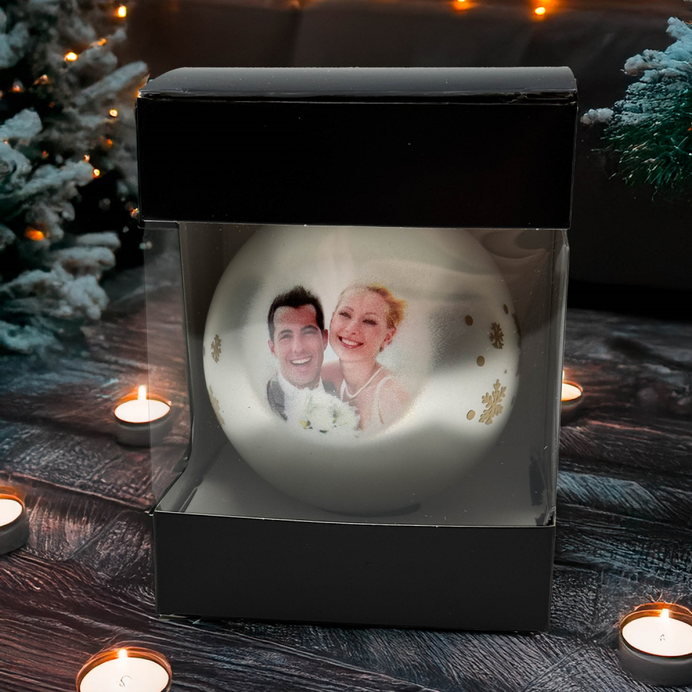 Weihnachtskugel aus Glas mit Foto bedruckt. Personalisierte Christbaumkugel