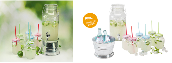 Der Getränkespender HOMEMADE mit seinem aufwändigen Prägestempel „Ice Cold Drink“ ist an heißen Sommertagen ideal. Was für ein Spaß, die selbst gemixten Getränke aus diesem Gefäß mit dem Ausgießhahn in Gläser zu füllen!