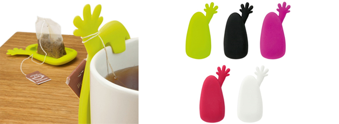 Jolly wird am Tassenrand eingehängt und hat den Teebeutel fest im Griff. Und wenn der Tee fertig ist, fungiert der witzige Teebeutelhalter als praktische Ablage.
