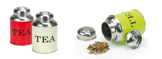 TEA, die Teedose im Retrostyle, hält den Lieblingstee durch einen zusätzlichen Innendeckel lange aromatisch und frisch. Die dekorative Teedose aus Edelstahl ist außen farbig und bringt so frischen Wind in die Küche.