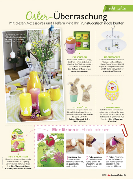 Die farbenfrohen Metall-Henkel-Eimerchen "Peggy" transportieren die Frühstückseier sicher an den Tisch!